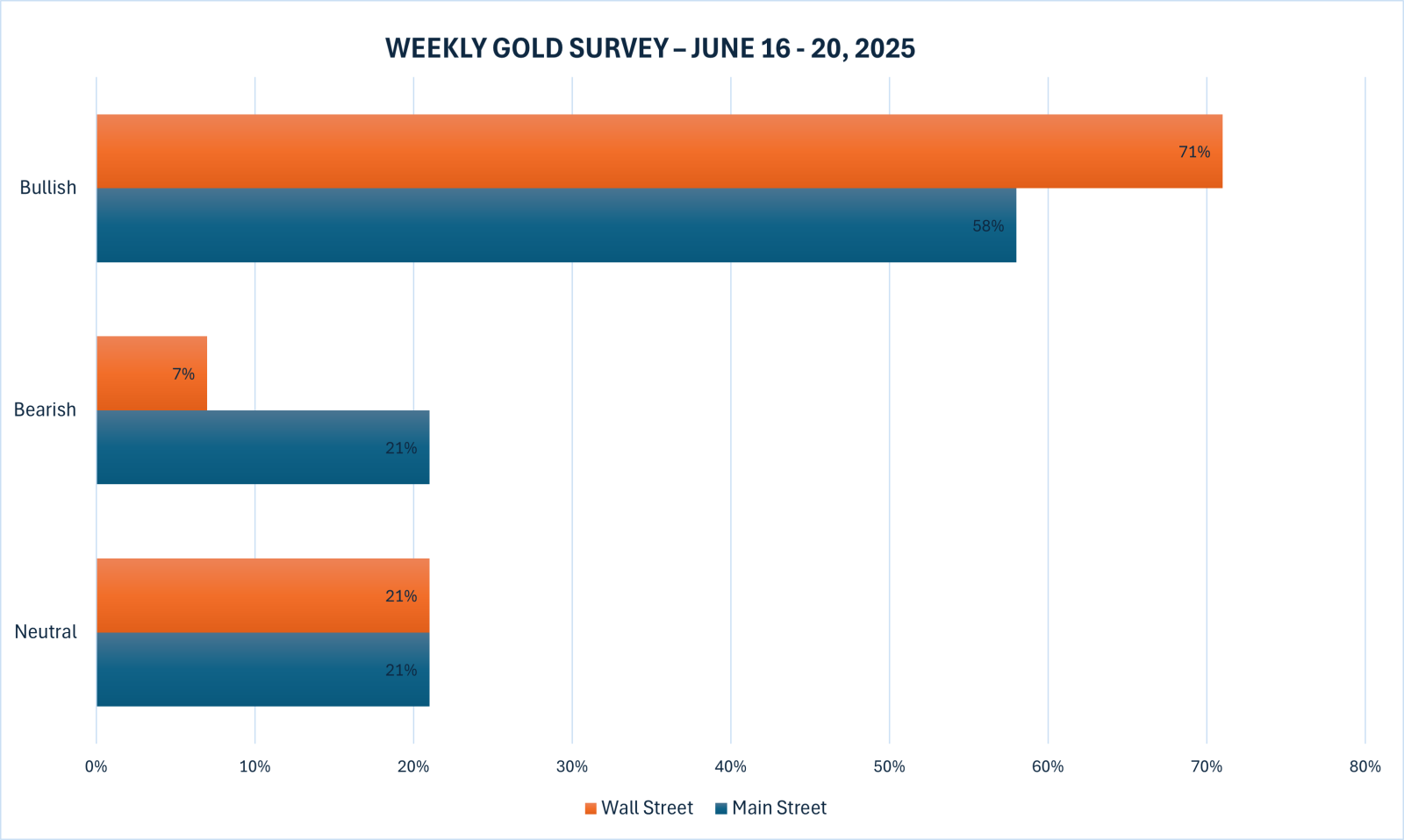 Khảo sát vàng hàng tuần mới nhất của Kitco News cho thấy sự lạc quan từ các chuyên gia trong ngành, trong khi nhà đầu tư lại có xu hướng thận trọng hơn dù giá vàng tăng mạnh.