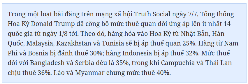 Dù vẫn còn nhiều điều chưa rõ ràng, ông cho rằng thỏa thuận lần này là “khoảng đệm” quý giá, giúp Việt Nam tránh được cú sốc thuế quan 46% và mở ra thời gian để các doanh nghiệp tái cấu trúc chuỗi cung ứng, kiểm soát rủi ro về xuất xứ và nâng cao năng lực cạnh tranh dài hạn.