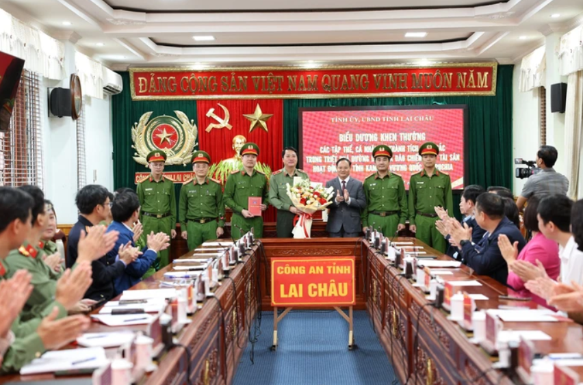 Tỉnh ủy, HĐND, UBND tỉnh Lai Châu đã tổ chức biểu dương, khen thưởng Ban Chuyên án 0525L. Ảnh: Công an cung cấp