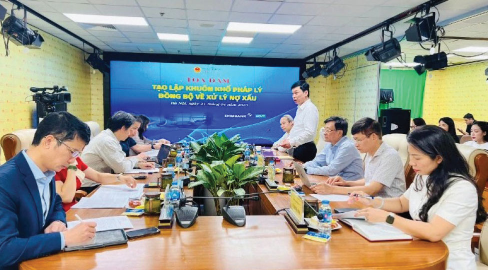 Toàn cảnh tọa đàm “Tạo lập khuôn khổ pháp lý đồng bộ về xử lý nợ xấu” diễn ra ngày 21-4-2025. Nguồn: nhandan.vn