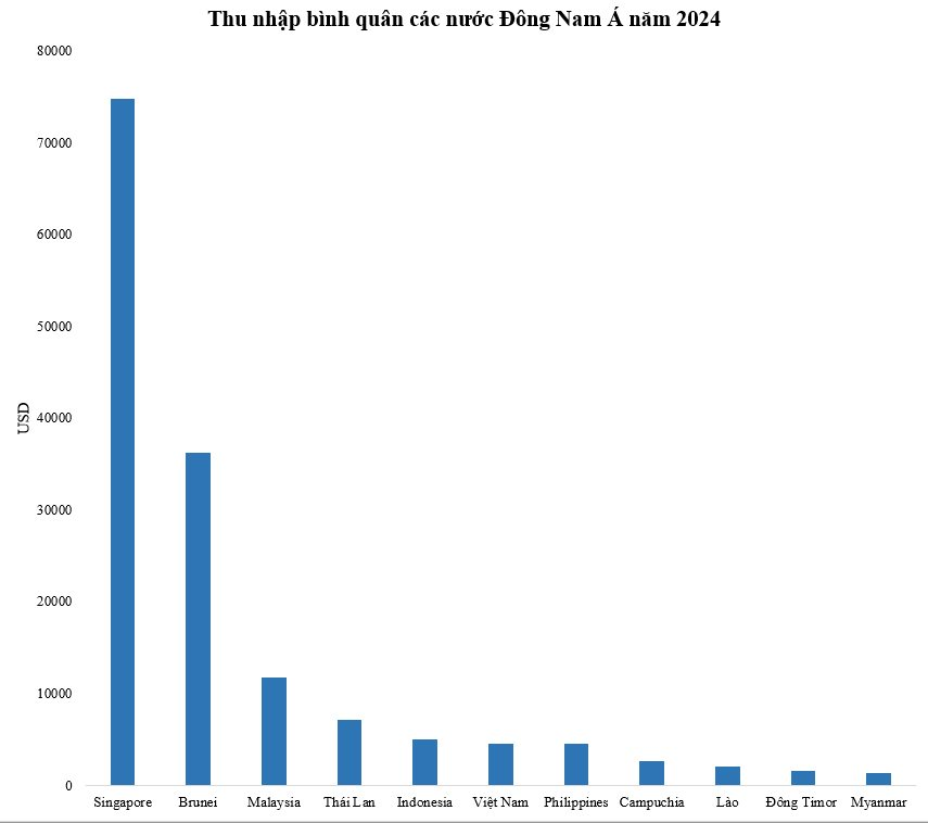 Thu nhập bình quân các nước Đông Nam Á năm 2024