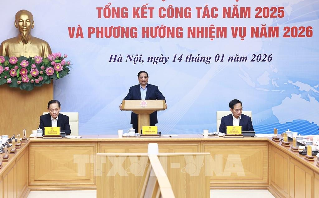 Sáng 14/1, tại Hà Nội, Thủ tướng Phạm Minh Chính, Trưởng Ban Chỉ đạo Quốc gia về hội nhập quốc tế chủ trì Hội nghị tổng kết công tác năm 2025 và phương hướng, nhiệm vụ năm 2026 của Ban Chỉ đạo.