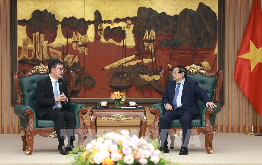 Thủ tướng Phạm Minh Chính tiếp ông Kim Hyoung-nyon, Phó Chủ tịch Tập đoàn Dunamu của Hàn Quốc. Ảnh: Dương Giang-TTXVN