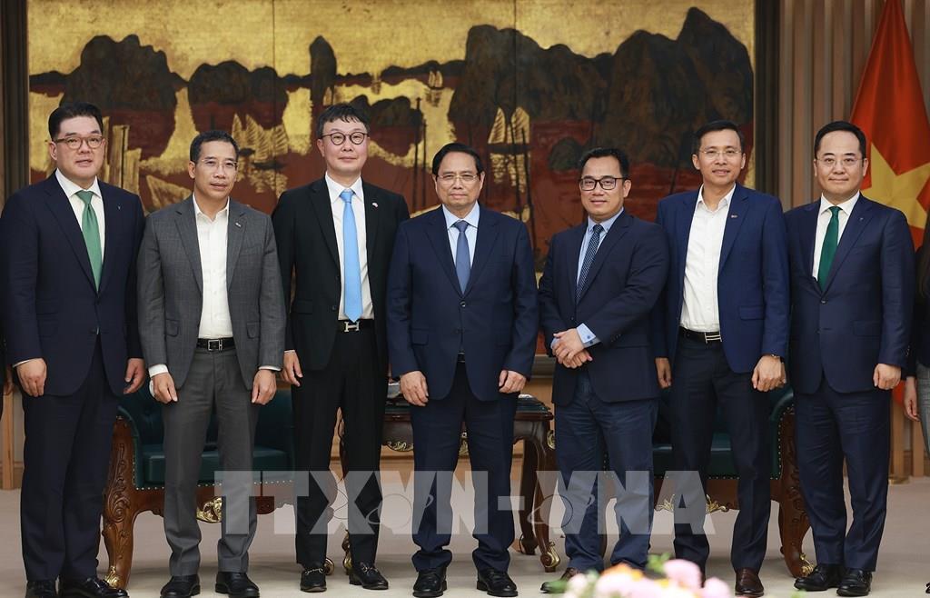 Thủ tướng Phạm Minh Chính tiếp ông Kim Hyoung-nyon, Phó Chủ tịch Tập đoàn Dunamu và ông Lee Eunhung, Phó Chủ tịch Tập đoàn Hana của Hàn Quốc. Ảnh: Dương Giang-TTXVN