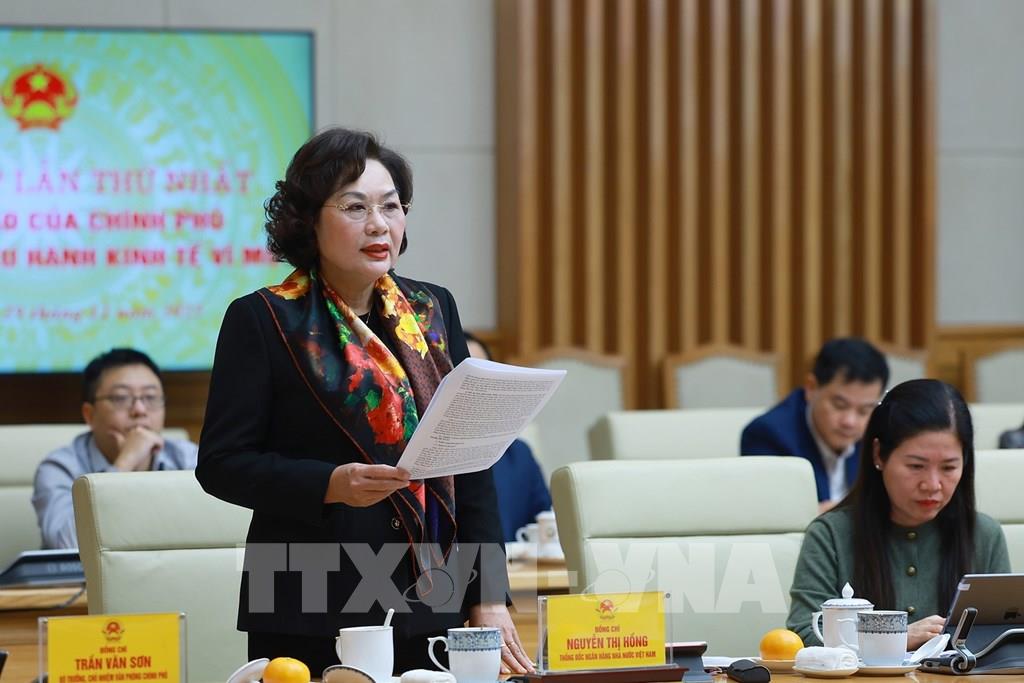 Thống đốc Ngân hàng Nhà nước Nguyễn Thị Hồng phát biểu. Ảnh: Dương Giang-TTXVN