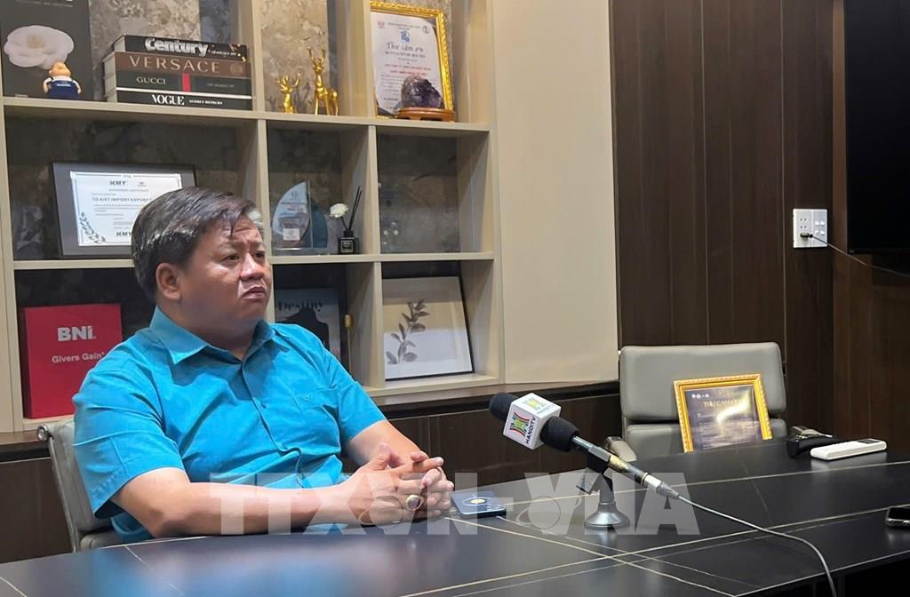 Ông Võ Xuân Trường, Chủ tịch Công ty cổ phần Mekolor, người đại diện Liên minh Mekolor - Great USA gửi đề xuất tham gia Dự án đường sắt cao tốc Bắc - Nam với số vốn 100 tỷ USD, trả lời báo chí ngày 11/6. Ảnh: TTXVN phát