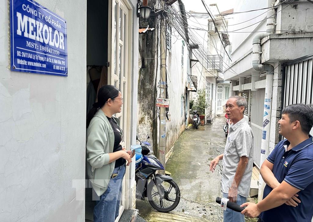 Theo chị O, căn nhà này được vợ chồng chị mua năm 2019. Chồng chị là nhân viên của Công ty cổ phần Mekolor và cho công ty thuê nhà để đặt văn phòng sau khi Công ty cổ phần Mekolor thay đổi địa điểm kinh doanh vào năm 2021. Chị O. cho biết tại đây có 2 nhân viên làm việc và hôm nay (11/6) đã đi họp ở Thành phố Hồ Chí Minh nên không có mặt ở văn phòng.