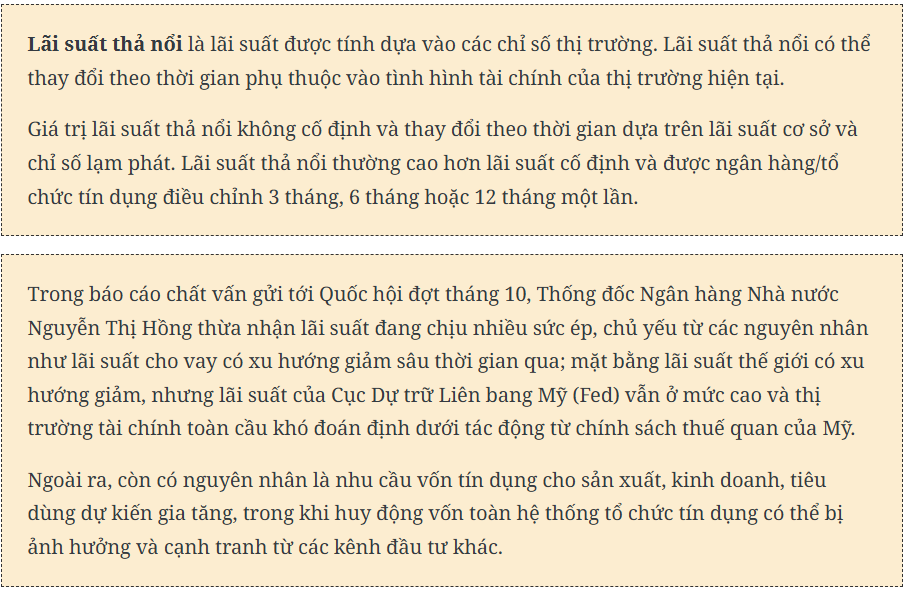 Mạng xã hội mới đây lan truyền thông báo của một khách hàng VPBank cho biết lãi vay của họ được điều chỉnh lên 14,8%/năm, tăng hơn 2 điểm % chỉ trong một tháng. Đây là mức cao hiếm thấy giữa lúc phần lớn ngân hàng vẫn duy trì lãi huy động dưới 6%/năm.