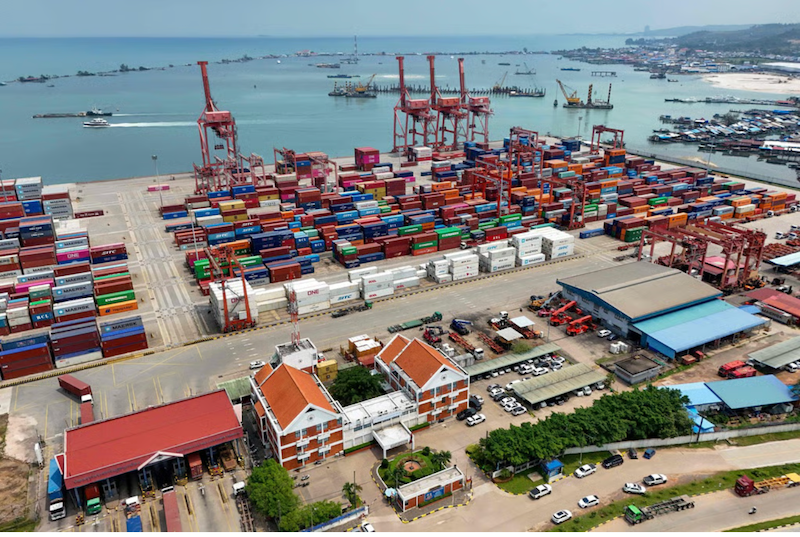 Các container vận chuyển tại một cảng ở Sihanoukville, Campuchia, vào đầu năm 2025. Ảnh: AFP