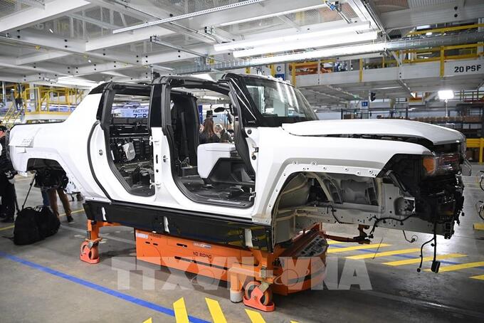 Dây chuyền sản xuất ô tô tại Nhà máy General Motors ở Detroit, Michigan, Mỹ. (Ảnh: AFP/TTXVN)
