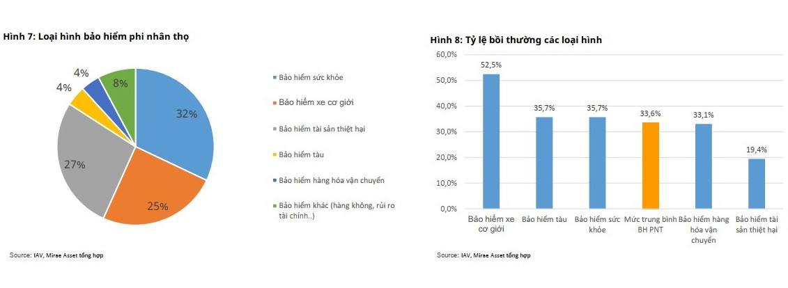 “Tỷ lệ bồi thường trung bình của các sản phẩm phi nhân thọ ở mức 33,6%, trong đó bảo hiểm xe cơ giới có tỷ lệ bồi thường cao nhất với mức 52,5% và thấp nhất là sản phẩm Bảo hiểm tài sản thiệt hại với tỷ lệ bồi thường 19,4%”, Mirae Asset cho biết.