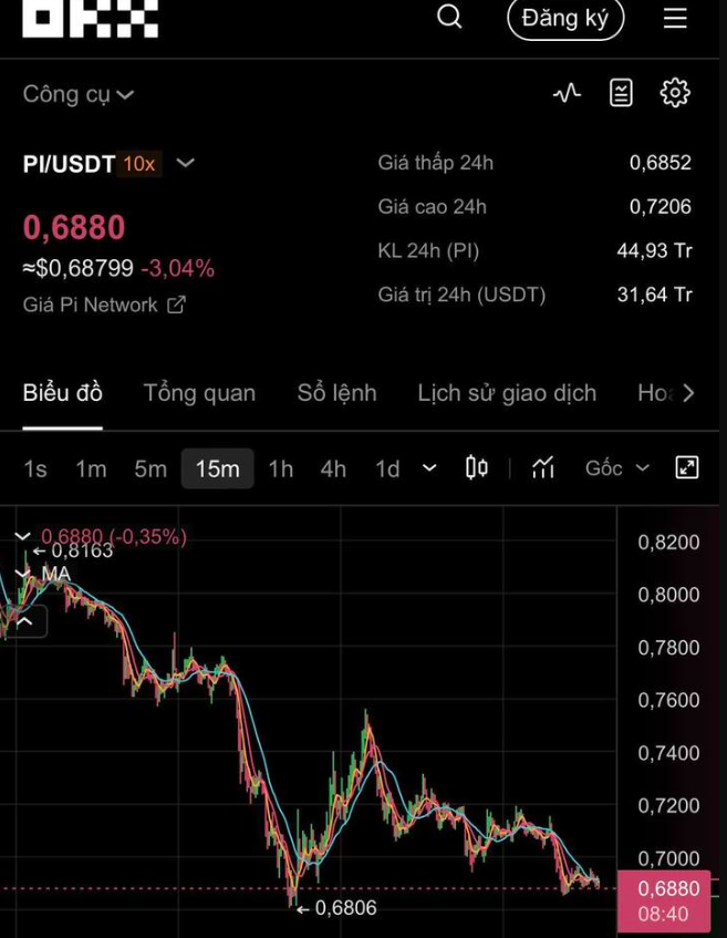 Lúc 14h20 ngày 2/4, trên sàn OKX, giá trị tiền ảo Pi Network được giao dịch ở mức 0,68 USD/Pi, mức gần như thấp nhất kể từ thời điểm bắt đầu lên sàn ngày 20/2. So với mức giá 2 USD/Pi ngày đầu chào sàn, tiền ảo Pi đã giảm tới hơn 70% giá trị, điều này khiến nhà đầu tư hoang mang.