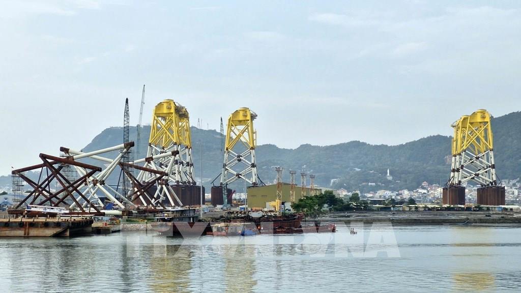 Sản xuất chân đế tháp điện gió tại cảng Hạ lưu PTSC ở thành phố Vũng Tàu. Ảnh: Đoàn Mạnh Dương-TTXVN