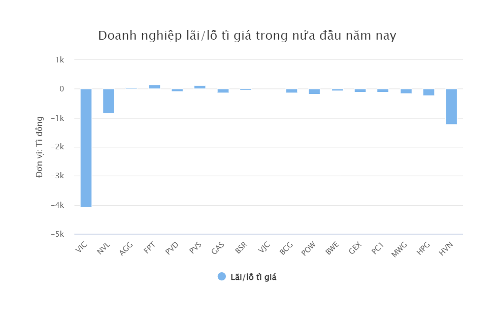 Thống kê của BSC còn chỉ ra nhiều doanh nghiệp vay nợ bằng USD lớn đã ghi nhận các khoản lỗ tỉ giá "khủng" trong nửa đầu năm 2024. Khi tỉ giá giảm, điều rõ nhận thấy nhất là sẽ bớt đi áp lực lỗ tỉ giá cho các doanh nghiệp này.