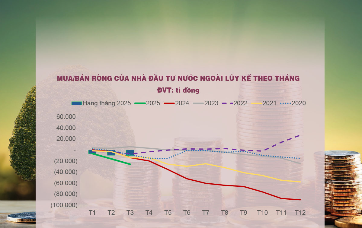 Khối ngoại tiếp tục bán ròng để cơ cấu danh mục toàn cầu sau đại dịch Covid-19, trong bối cảnh bất ổn địa chính trị, căng thẳng thương mại và xu hướng duy trì lãi suất cao từ Cục Dự trữ liên bang Mỹ (Fed). Trong nước, các tổ chức đầu tư lớn cũng duy trì trạng thái phòng thủ do sức cầu yếu, cũng như các yếu tố về lãi suất và tỷ giá chưa rõ ràng. Tín dụng tăng chậm, lãi suất giảm nhưng chưa đủ kích thích đầu tư mở rộng, khiến dòng tiền nhàn rỗi chưa thực sự chảy mạnh vào cổ phiếu.