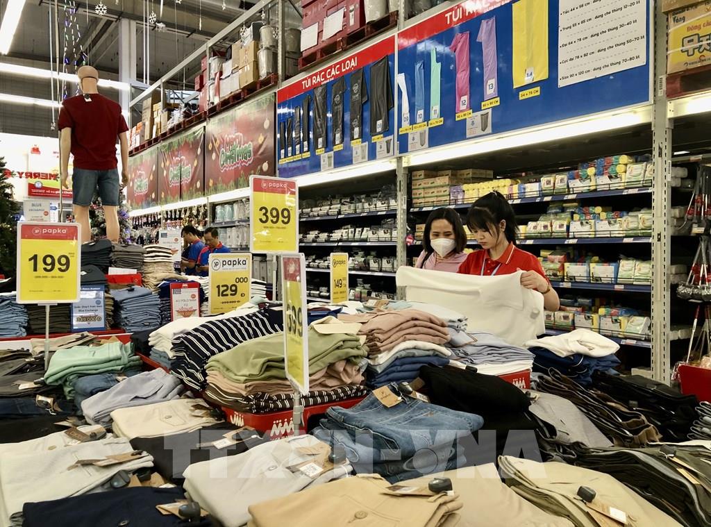 Nhóm hàng thời trang may mặc áp dụng nhiều mức giảm giá tại siêu thị Thành phố Hồ Chí Minh. Ảnh: Mỹ Phương – TTXVN