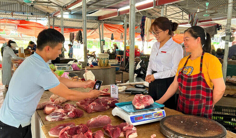Không chỉ áp dụng công nghệ trong bán hàng, nhiều tiểu thương còn mở rộng phương thức thanh toán. Tại chợ xã Ninh Giang, người mua hàng chuyển khoản qua mã QR đã không còn là chuyện lạ. “Mỗi ngày cũng có vài chục lượt thanh toán qua điện thoại. Tôi cài app ngân hàng, khách quét mã là xong. Mấy tháng đầu lúng túng, nhưng giờ quen tay rồi” - chị Vũ Thị Tình, bán thịt cho biết.