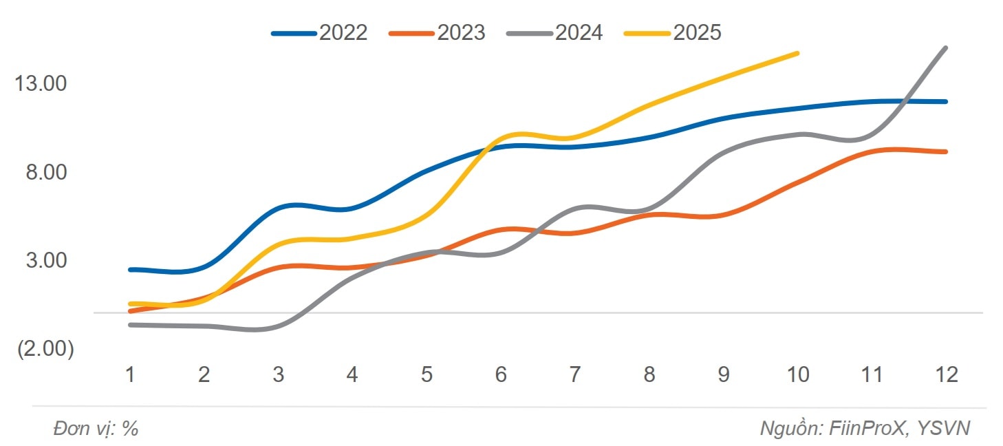 Ngân hàng Nhà nước (NHNN) cho biết, đến hết tháng 10/2025, tăng trưởng tín dụng đạt 15,1% so với đầu năm, ghi nhận mức tăng cao nhất trong 5 năm qua.