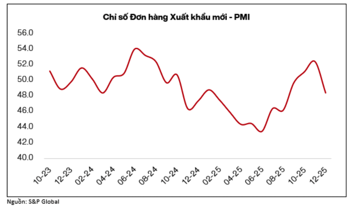 Chỉ số “Đơn hàng xuất khẩu mới” trong Chỉ số PMI ngành sản xuất của Việt Nam đã đạt mức cao nhất trong 15 tháng vào tháng 11/2025.