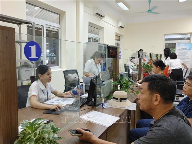Không khí làm việc nền nếp tại Trung tâm Phục vụ hành chính công phường Nghĩa Đô (Hà Nội). Ảnh: Nguyễn Cúc/TTXVN