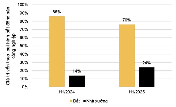 Diễn biến này mở ra cơ hội cho các chủ đầu tư tập trung phát triển nguồn cung nhà xưởng tiêu chuẩn, tuân thủ tiêu chí ESG và sẵn sàng cho tự động hóa. Tuy nhiên, xét về giá trị vốn đầu tư, giao dịch đất vẫn chiếm ưu thế với 76% (tương đương 3,84 tỷ USD), so với 24% dành cho nhà xưởng – một mức tăng đáng kể so với 14% của cùng kỳ 2024. Khoảng cách thu hẹp này cho thấy sức hút ngày càng lớn của mô hình nhà xưởng nhờ chi phí CAPEX thấp hơn và khả năng linh hoạt cao hơn.