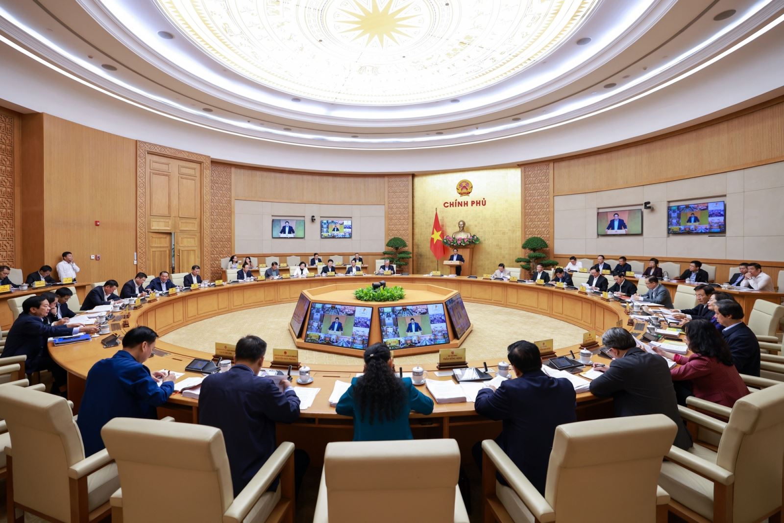 Thủ tướng nêu rõ, mục tiêu lớn nhất là ổn định kinh tế vĩ mô, kiểm soát lạm phát, thúc đẩy tăng trưởng, bảo đảm các cân đối lớn của nền kinh tế; đây vừa là mục tiêu, vừa là động lực, vừa là nguồn lực cho sự phát triển, nếu thực hiện được thì mới tăng trưởng cao, phát triển nhanh và bền vững. Các bộ trưởng, trưởng ngành, Chủ tịch UBND các tỉnh, thành phố cần chủ động, tích cực thực hiện các công việc theo chức năng, nhiệm vụ, quyền hạn để đạt mục tiêu này và có biện pháp khắc phục các hạn chế, tồn tại, thách thức đã chỉ ra.