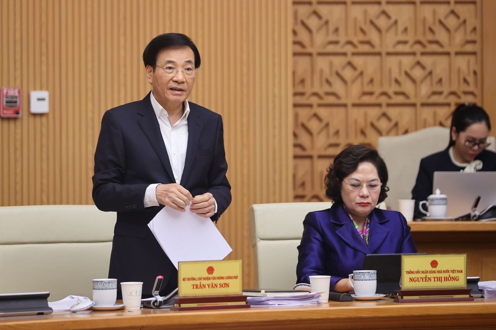 Bộ trưởng, Chủ nhiệm VPCP Trần Văn Sơn báo cáo tại Phiên họp - Ảnh: VGP/Nhật Bắc