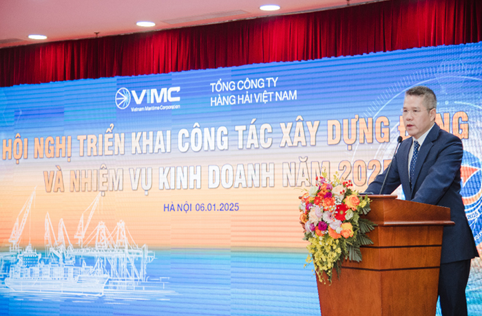Tổng Giám đốc VIMC Nguyễn Cảnh Tĩnh phát biểu tại hội nghị tổng kết năm 2024 chiều 6/1/2025. Ảnh: VIMC