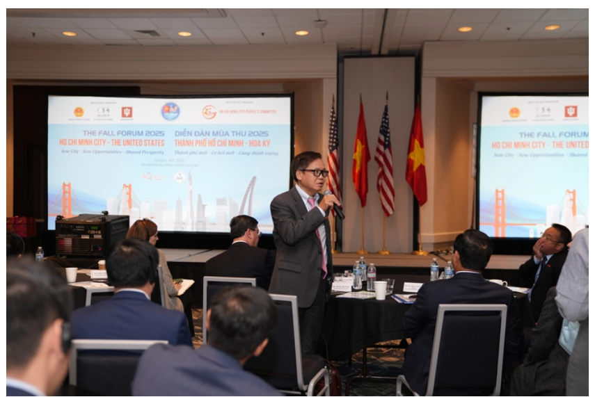 Chiều tối 17-10, thông tin từ Trung tâm Xúc tiến Thương mại và Đầu tư TP HCM (ITPC) cho biết đơn vị vừa phối hợp với Đại học Indiana, Hội đồng kinh doanh Hoa Kỳ - ASEAN, Viện Sáng kiến Việt Nam tổ chức thành công "Diễn đàn Mùa thu TP HCM – Hoa Kỳ 2025" với chủ đề "TP HCM - Hoa Kỳ: Thành phố mới – Cơ hội mới – Cùng thịnh vượng". Sự kiện diễn ra vào ngày 16-10, tại Hoa Kỳ, theo chỉ đạo của lãnh đạo UBND TP HCM.