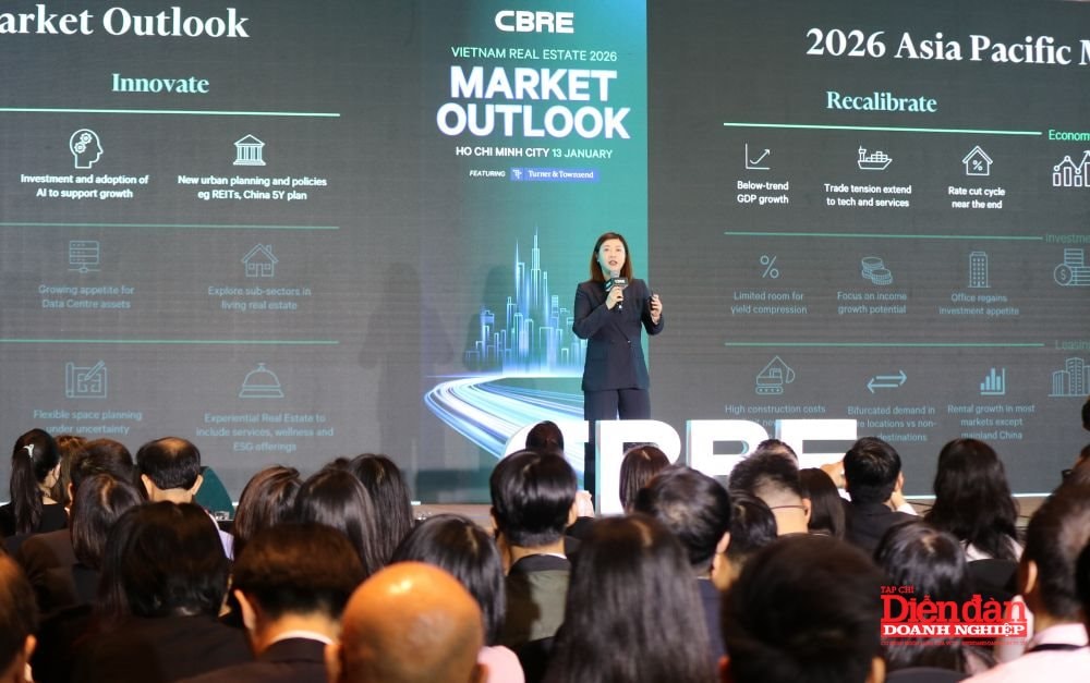 Chuyên gia CBRE Việt Nam chia sẻ tại sự kiện công bố tiêu điểm thị trường bất động sản TP HCM quý 4/2025 - Ảnh: Đình Đại.