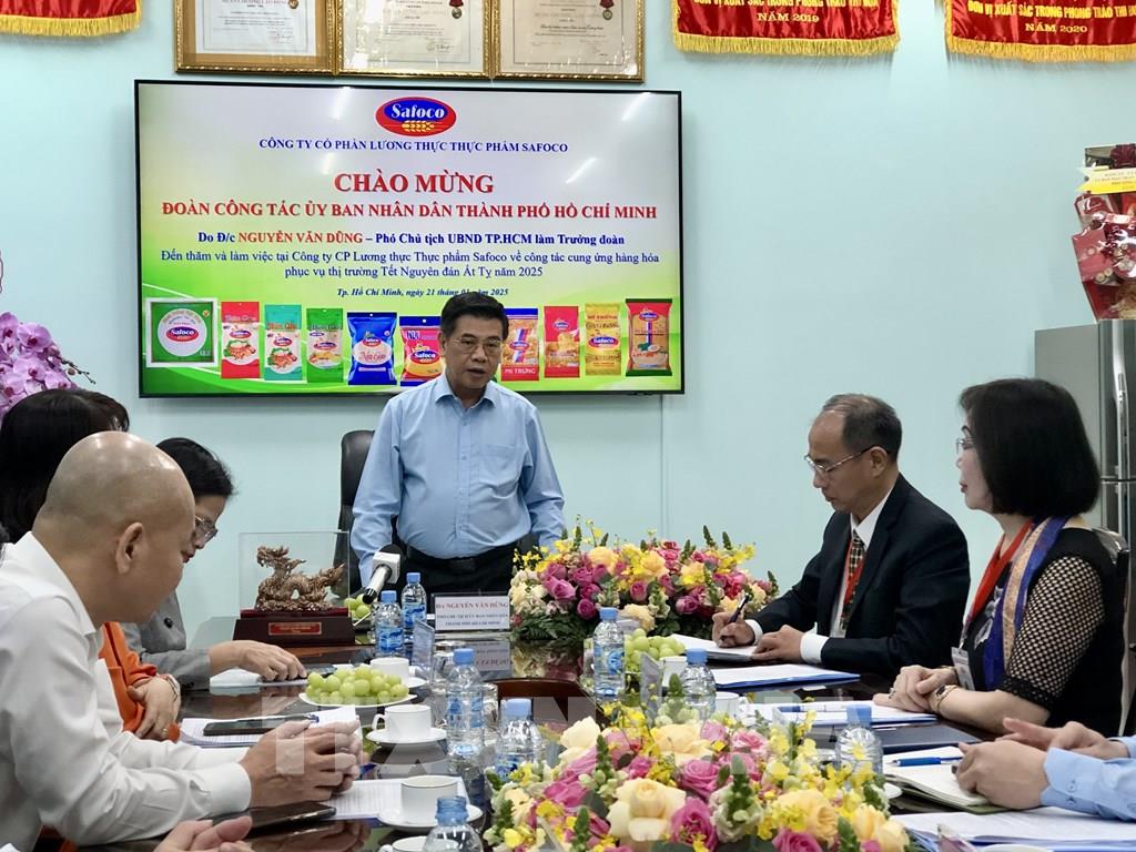 Qua kiểm tra hoạt động sản xuất, kinh doanh, phân phối các mặt hàng lương thực, thiết yếu dịp Tết Nguyên đán Ất Tỵ năm 2025, Phó Chủ tịch UBND Tp. Hồ Chí Minh, ông Nguyễn Văn Dũng đánh giá nguồn cung hàng hóa tại doanh nghiệp và điểm bán lẻ đảm bảo theo đúng kế hoạch của thành phố, nhất là như những cam kết của các đơn vị đã công bố đến người tiêu dùng. Cùng đó, các đơn vị này còn triển khai đa dạng chương trình ưu đãi, giảm giá tập trung vào nhóm mặt hàng tiêu dùng thiết yếu trong dịp Tết Nguyên đán Ất Tỵ năm 2025.