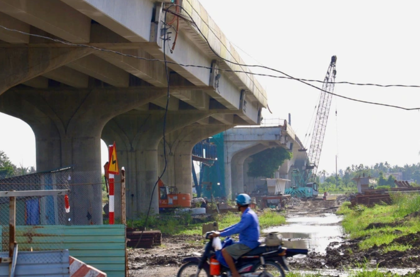 Khu vực thi công tại vị trí cầu Bình Gởi, thuộc Dự án thành phần 5, đường Vành đai 3