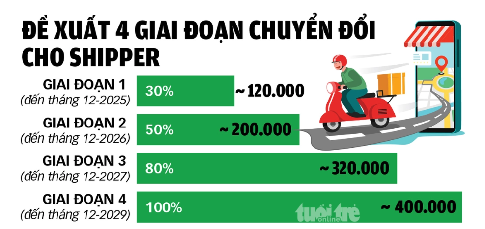 Theo đề án này, TP.HCM có khoảng 400.000 shipper, tài xế công nghệ hoạt động sẽ được chuyển đổi sang xe điện theo từng giai đoạn.