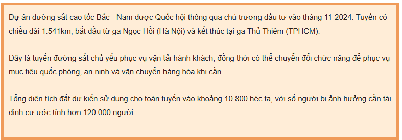 Theo kế hoạch, chủ đầu tư sẽ lập, trình thẩm định và phê duyệt dự án xây dựng khu tái định cư phục vụ tuyến đường sắt cao tốc đoạn qua thành phố, phấn đấu phê duyệt trước ngày 19-8 và hoàn thành trong quí 2-2026.