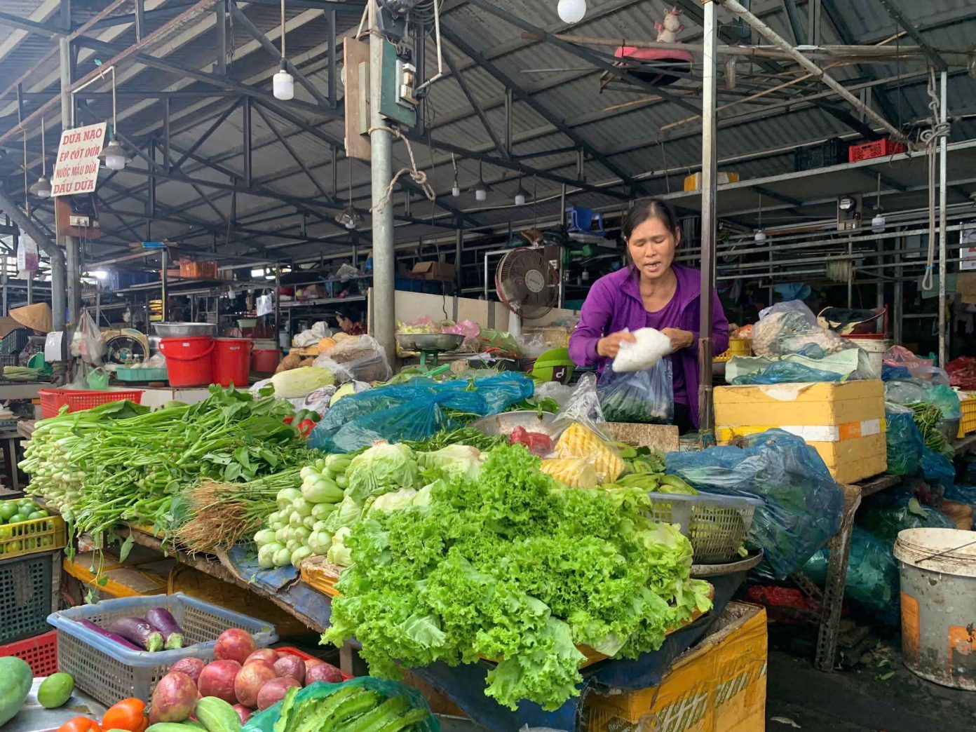 Với hàng rau củ quả, lượng hàng nhập chợ và sức mua bán giảm mạnh, do thương nhân chủ yếu bán các mặt hàng còn lại nhập từ những ngày trước. Đồng thời nhiều thương nhân đóng cửa vựa nghỉ sớm.