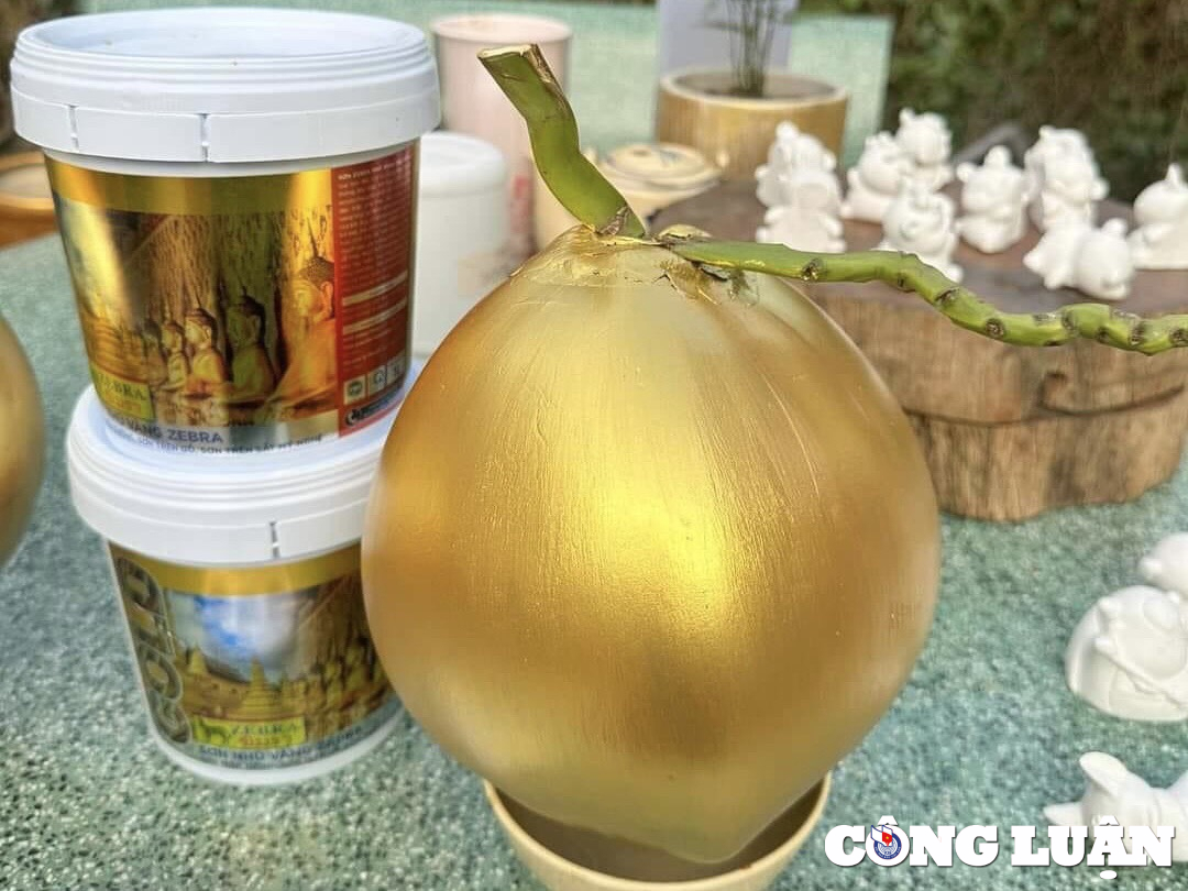 “Dừa, bưởi mạ vàng mang ý nghĩa cầu mong sự tài lộc, sung túc, may mắn trong năm mới nên thông thường khách đặt mua theo cặp để đặt lên bàn thờ hoặc làm quà biếu. Hai loại trái cây này có thể chơi được khá lâu, khoảng ra Rằm Tháng Giêng vẫn có thể tiếp tục trưng” - chị Hoài chia sẻ.