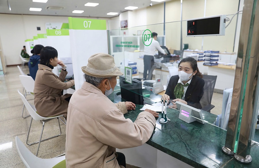 Ngành Ngân hàng chiếm phần lớn giá trị phát hành trái phiếu doanh nghiệp trong năm 2024. Trong ảnh: Giao dịch tại Ngân hàng thương mại cổ phần Ngoại thương Việt Nam. Ảnh: Đỗ Tâm