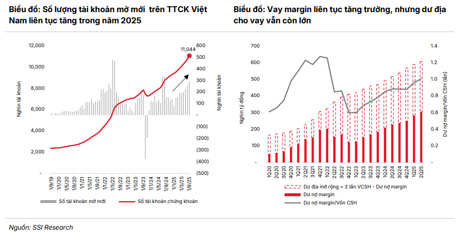 Dù triển vọng tổng thể tích cực, các chuyên gia của SSI Research lưu ý một số rủi ro cần theo dõi, trong đó nổi bật là dư nợ margin ở mức cao có thể khuếch đại biến động nếu tâm lý thị trường đảo chiều. Bên cạnh đó, đà tăng của thị trường bất động sản có thể chững lại sau giai đoạn phục hồi mạnh, kéo theo những rủi ro lan tỏa tới tín dụng ngân hàng.