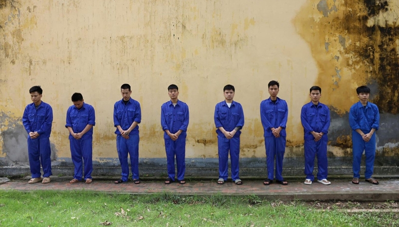 Các đối tượng trong đường dây bị bắt giữ. Ảnh: CA Hưng Yên.
