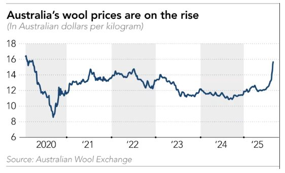Các chuyên gia trong ngành cho biết động lực chính đến từ nhu cầu gia tăng từ Trung Quốc, quốc gia nhập khẩu hơn 85% len Úc cho ngành dệt may và may mặc. Sản lượng len tại Úc được dự báo giảm 11,8% trong mùa vụ 2024/25 do nông dân chuyển hướng sang sản phẩm khác hoặc chịu tác động từ hạn hán. Trong tháng 8, lượng len được kiểm định tại Úc đã giảm 24% so với cùng kỳ năm ngoái.
