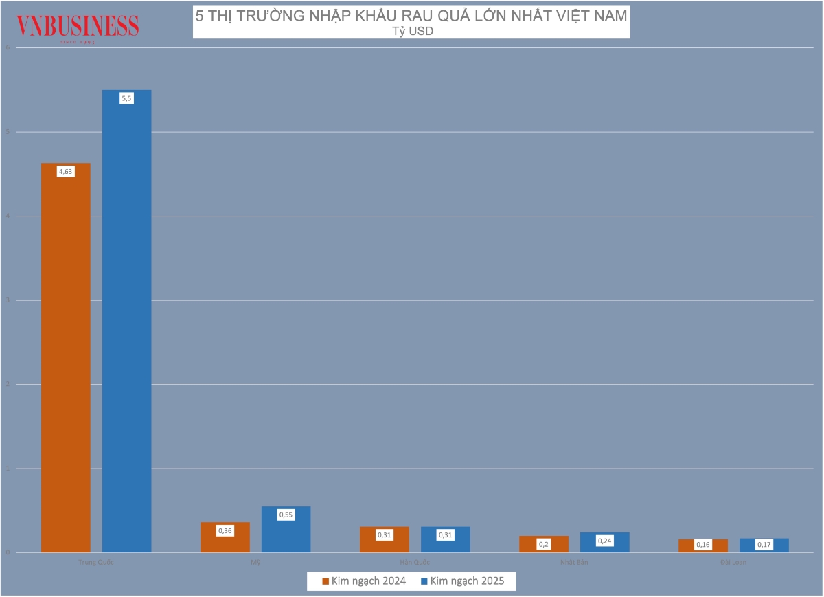 Năm 2025, ngành rau quả Việt Nam thiết lập cột mốc lịch sử với kim ngạch xuất khẩu đạt hơn 8,56 tỷ USD. Trong đó, thị trường Trung Quốc tiếp tục khẳng định vai trò "đầu tàu" khi đóng góp tới 5,5 tỷ USD, chiếm gần 2/3 tổng giá trị toàn ngành.