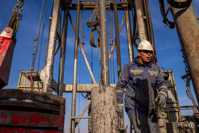 Một công nhân dầu khí làm việc ở mỏ Zhetybay của Kazakhstan.(Ảnh: Reuters)