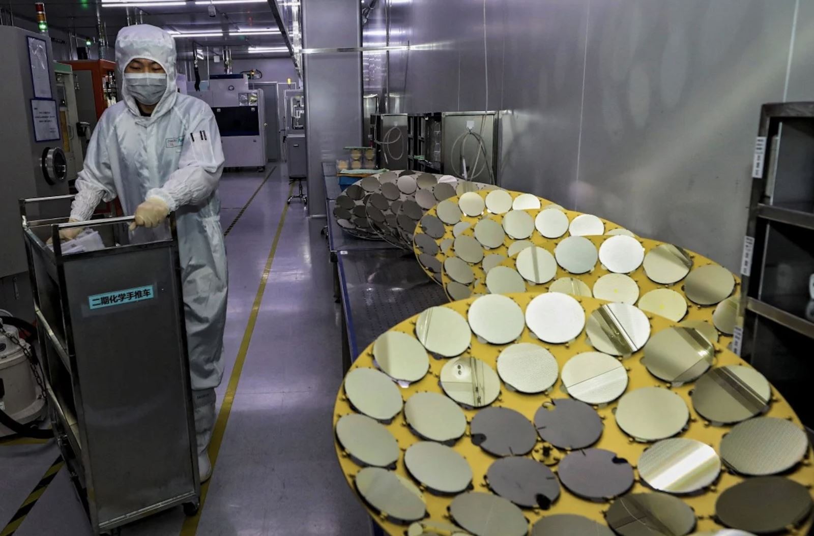 Công nhân làm việc tại một nhà máy sản xuất chất bán dẫn ở tỉnh Giang Tô, Trung Quốc - Ảnh: AFP