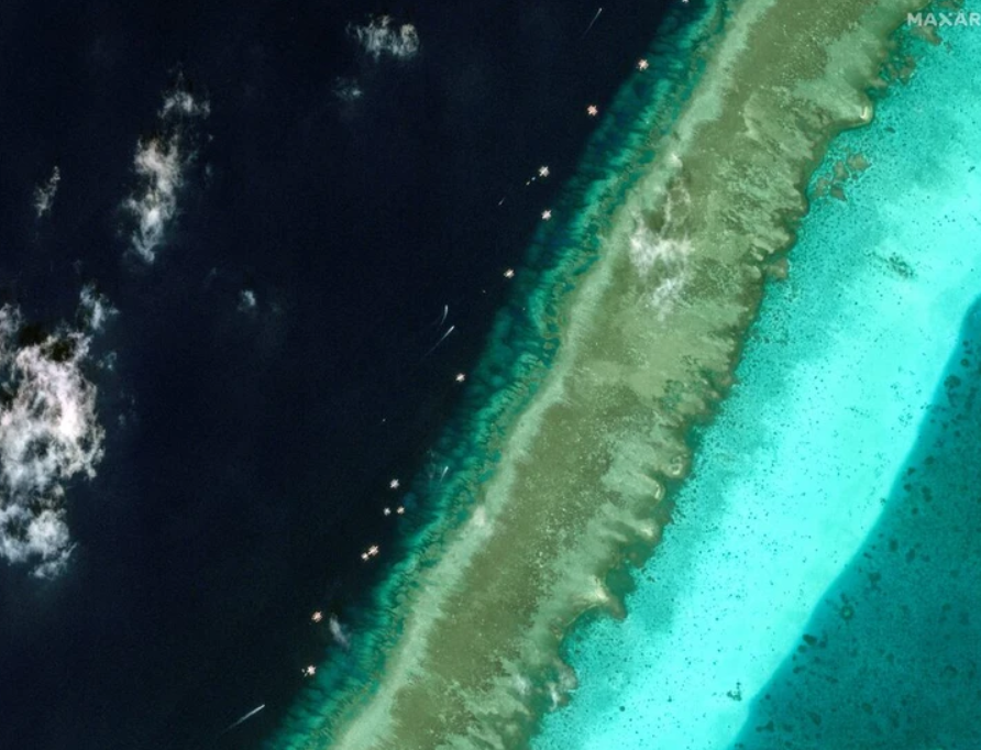 Bãi cạn Scarborough trong ảnh chụp vào tháng 2-2024 - Ảnh: REUTERS/Maxar Technologies