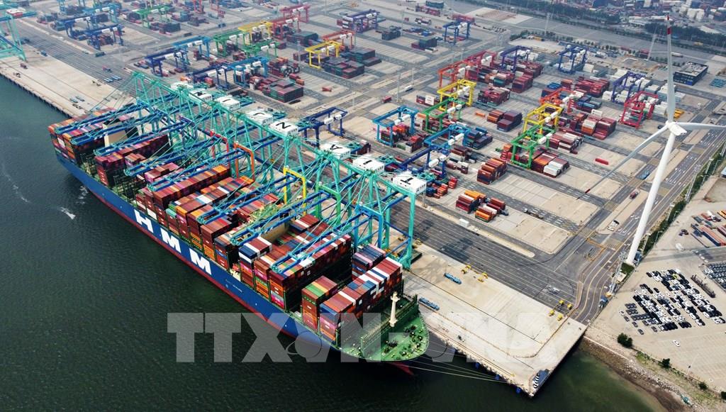 Quang cảnh cảng hàng hóa ở Thiên Tân, Trung Quốc. Ảnh: THX/TTXVN