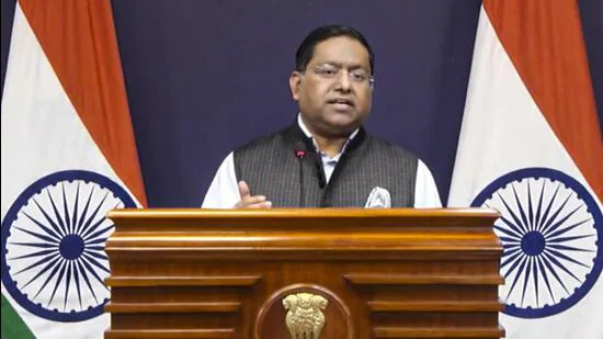 Người phát ngôn Bộ Ngoại giao Randhir Jaiswal phát biểu trong buổi họp báo tại New Delhi Ảnh: MEAIndia