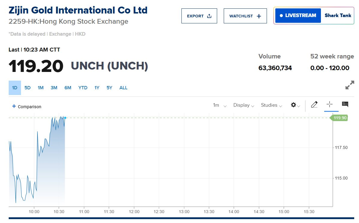 Chi nhánh khai thác vàng quốc tế Zijin Gold của tập đoàn Trung Quốc Zijin đã chính thức niêm yết tại sàn Hồng Kông. Cổ phiếu Zijin Gold sau đó tăng vọt hơn 60% trong phiên giao dịch ngày 30/9.