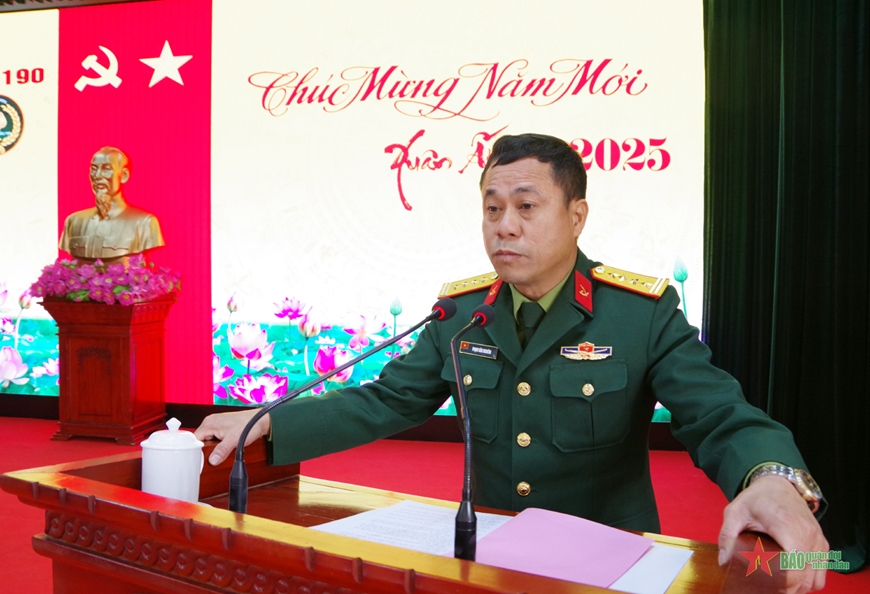 Phát biểu tại buổi thăm, chúc Tết, Trung tướng Đỗ Văn Thiện nhấn mạnh vai trò, vị trí quan trọng của Kho 190; ghi nhận, biểu dương những kết quả mà đơn vị đã đạt được trong thời gian qua, nhất là năm 2024. Đồng chí Chính ủy Tổng cục Hậu cần yêu cầu, từ những kết quả đạt được, thời gian tới, Đảng ủy, chỉ huy Kho 190 cần tiếp tục làm tốt công tác giáo dục về tinh thần, trách nhiệm cho cán bộ, nhân viên, chiến sĩ chấp hành nghiêm các chỉ thị, văn bản, quy định của các cấp về sẵn sàng chiến đấu, đón Tết Nguyên đán Ất Tỵ, nhất là các quy định về bảo đảm an toàn giao thông; duy trì nghiêm túc chế độ trực, nền nếp giao ban, hội họp.