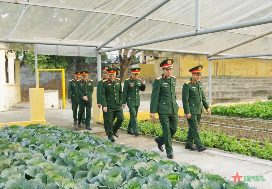 Trung tướng Đỗ Văn Thiện và đoàn công tác tham quan vườn rau của đơn vị.