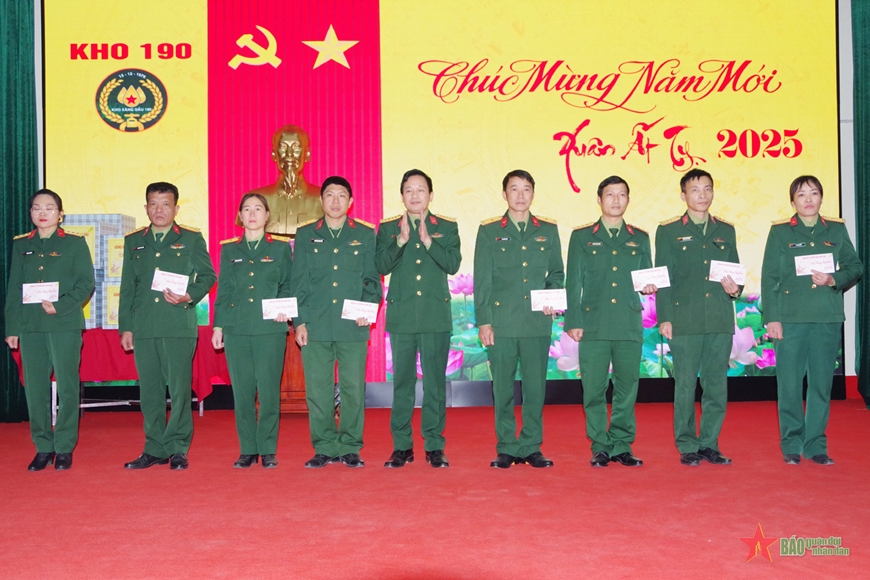 Nhân dịp chuẩn bị đón Xuân Ất Tỵ 2025, ngày 6-1, Trung tướng Đỗ Văn Thiện, Bí thư Đảng ủy, Chính ủy Tổng cục Hậu cần đã đến thăm, chúc Tết và tặng quà cán bộ, nhân viên, chiến sĩ Kho 190, Cục Xăng dầu (Tổng cục Hậu cần).